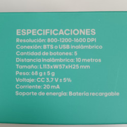 Ratón inalámbrico recargable. Funciona por bluetooth y por USB inalámbrico.